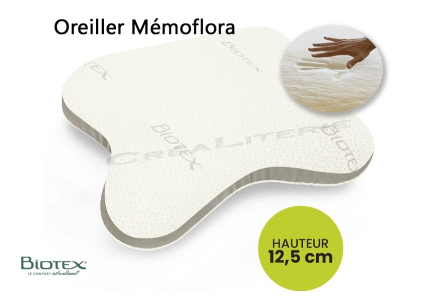 Oreiller Mémoflora végétale à mémoire de forme à base d huile de Ricin housse Biocoton Fabriqué en France par BIOTEX. ...