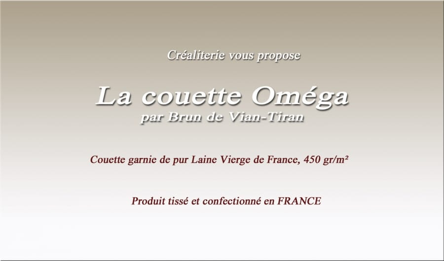 Couette Omega 450 gr/m² BVT en laine vierge de France Fabrication Française par Brun de Vian-Tiran. Couette OMÉGA 450 gr/m² en...