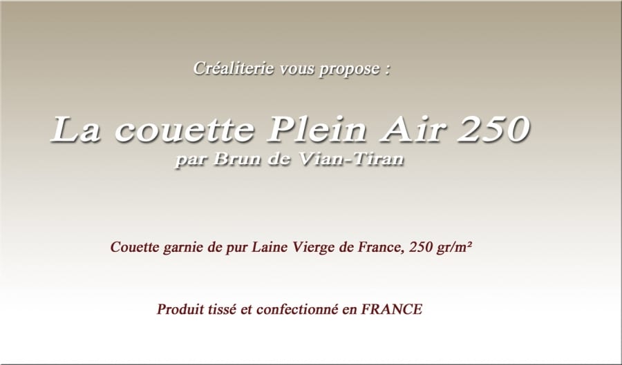 Couette bvt Plein Air 250 gr/m² en laine vierge de France couette été et demi-saison Fabrication Française par Brun de...