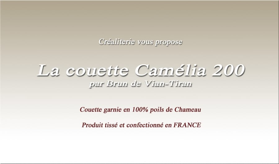 Couette CAMÉLIA 200 gr/m² Bvt en poils de chameau Fabrication Française Brun de Vian-Tiran. Couette CAMÉLIA 200 gr/m² en 100% poils...