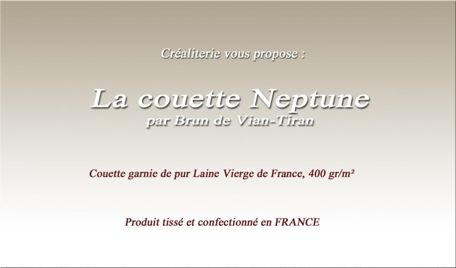 Couette Neptune 400 gr/m² en laine vierge de France Lavable Fabrication Française par Brun de Vian-Tiran. Couette NEPTUNE 400 gr/m² en...