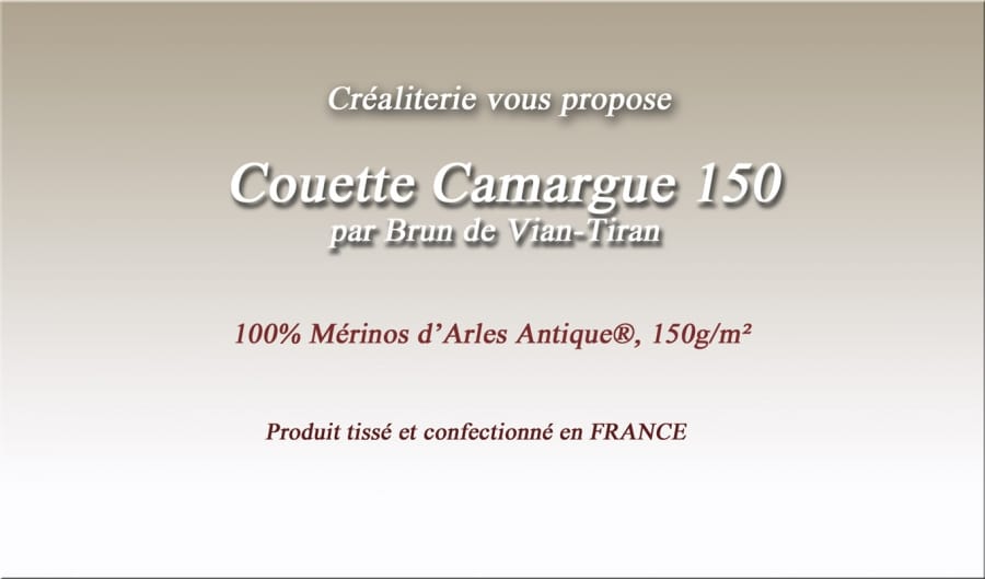 Couette CAMARGUE 150 g/m² en merinos d’Arles antique® Fabrication Française BRUN DE VIAN-TIRAN. Couette CAMARGUE 150 gr/m² en 100% Mérinos d...