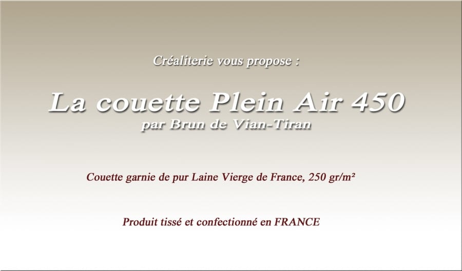 Couette bvt Plein Air 450 gr/m² en laine vierge de France Fabrication Française Brun de Vian-Tiran. Couette PLEIN AIR 450 gr/m²...