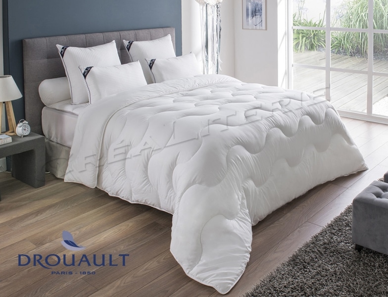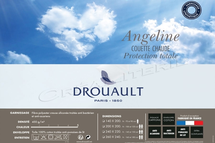 Couette Angeline hiver Protect Total 450 g/m² fibre polyester,traitée anti-acariens et punaise de lit fabriquée en France par Drouault. Couette ligne...