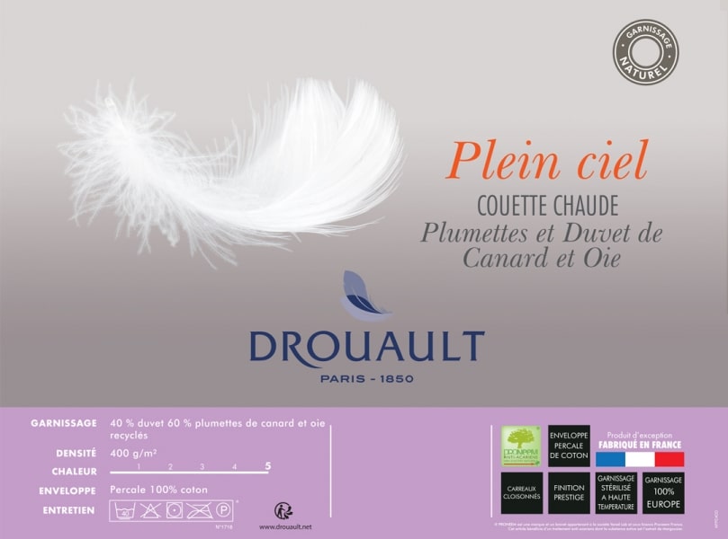 Couette Plein Ciel chaude 400 g /m², en duvet d’oie et canard traité anti-acariens Proneem® naturels fabriquée en France par...