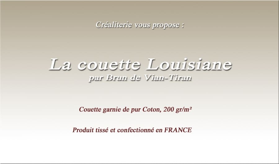 Couette bvt Louisiane 200 gr/m² en coton couette été Fabrication Française par Brun de Vian-Tiran. Couette LOUISIANE 200 gr/m² en 100%...