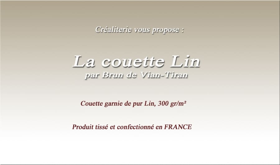 Couette LIN 300 gr/m² BVT en lin fibre naturelle noble Fabrication Française par Brun de Vian-Tiran. Couette LIN 300 gr/m² en...