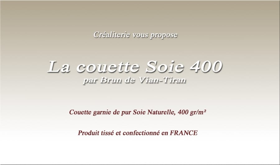 Couette SOIE 400 Naturelle 400 g/m² en Soie Naturelle Fabrication Française par Brun de Vian-Tiran. Couette SOIE Naturelle 400 gr/m² en...