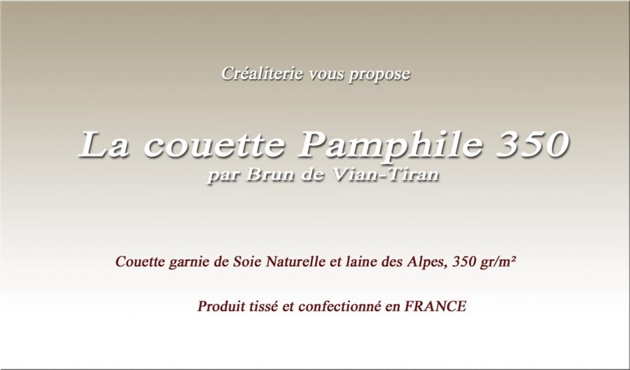 Couette PAMPHILE 350 g/m² BVT 30 % soie et 70 % laine des Alpes Fabrication Française par Brun de Vian-Tiran. Couette...