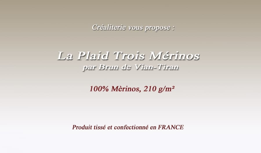 Plaid Trois Mérinos 210 g/m² en mérinos fabrication Française par Brun de Vian-Tiran. Plaid TROIS MÉRINOS 210 gr/m² en 100% Mérinos,...