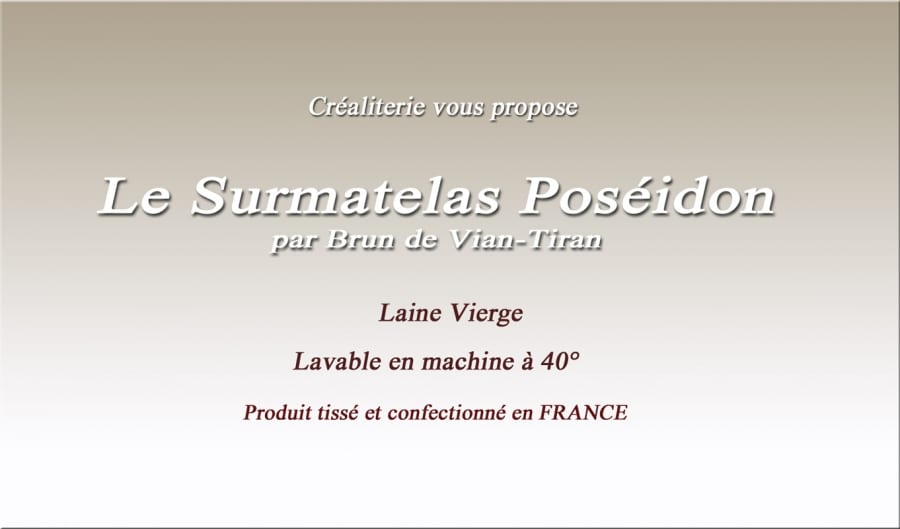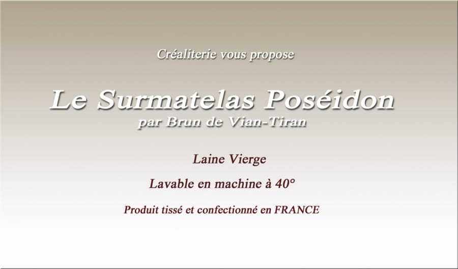 Surmatelas bvt Poséidon 650 gr/m² en 100 % laine vierge woolmark lavable fabrication Française par Brun de Vian Tiran. Surmatelas POSÉDON...