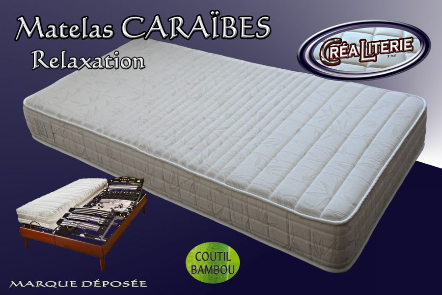 Matelas CARAÏBES relaxation haute résilience 35 kg/m³(coutil bambou) Fabrication Française par Créaliterie.Matelas 100% polyuréthane haute résilience densité 35 kg/m³ LITERIE...
