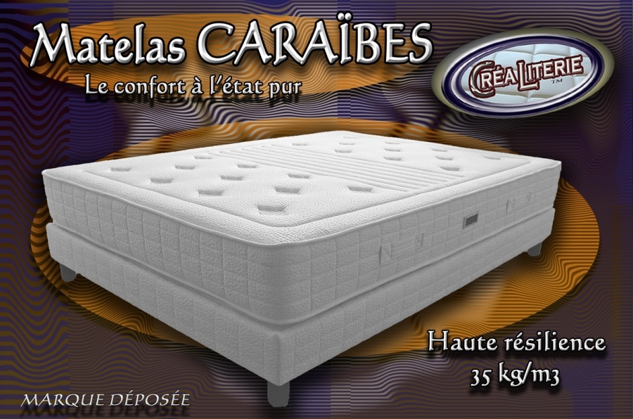 Matelas CARAÏBES en mousse polyuréthane haute résilienceMatelas 100% polyuréthane haute résilience densité 35 kg/m³ sans cfc LITERIE GAMME CONFORT MATELAS...