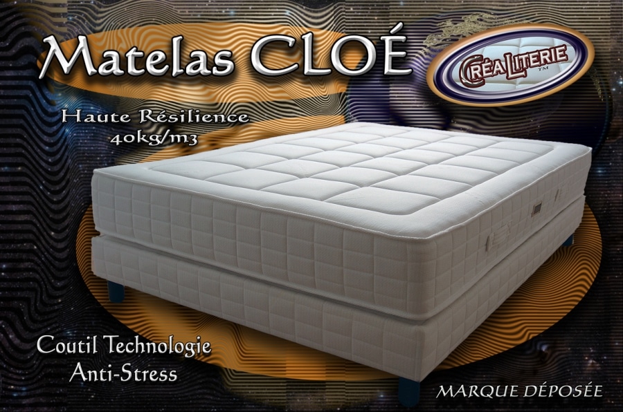 Matelas Cloé en Mousse Polyuréthane haute résilience 40 kg/m² Fabrication Française par Créaliterie.Matelas 100% polyuréthane haute résilience densité 40 kg/m³ ...