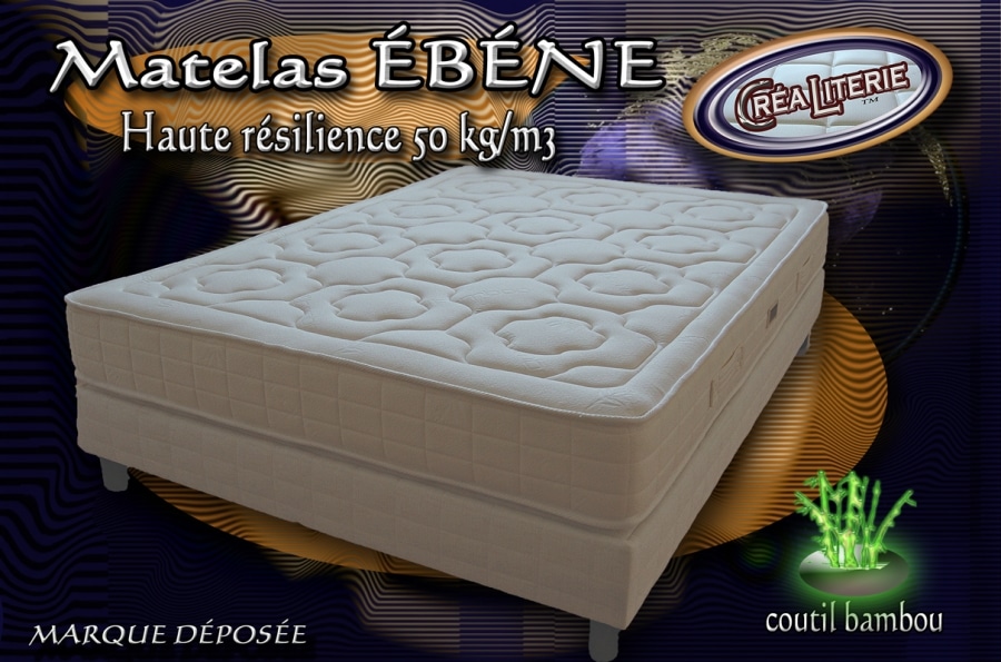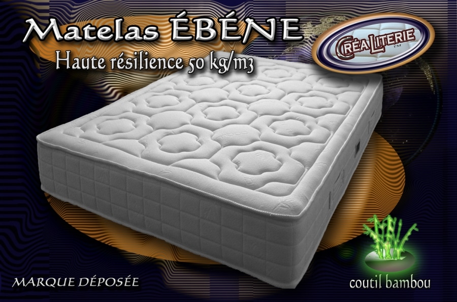Matelas ÉBÉNE mousse polyuréthane haute résilience (coutil Bambou)Matelas 100% polyuréthane haute résilience densité 50 kg/m³LITERIE GAMME CONFORT MATELAS GARANTIE 7...