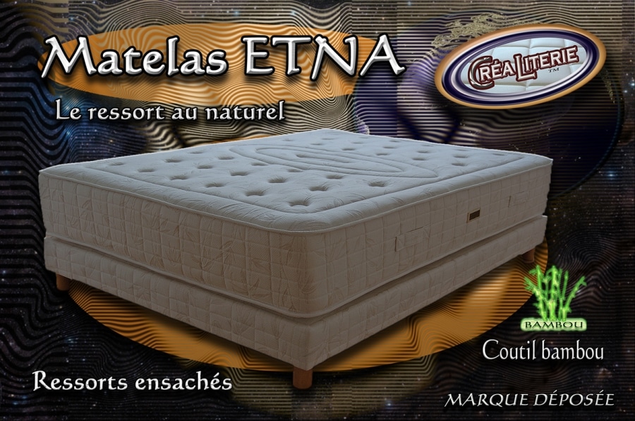 Matelas ETNA ressorts ensachés (coutil Bambou) Fabrication Française par Créaliterie.Matelas de 638 ressorts thermostabilisés ensachés + 30 mm de mousse...