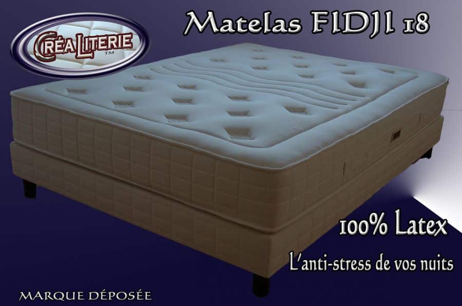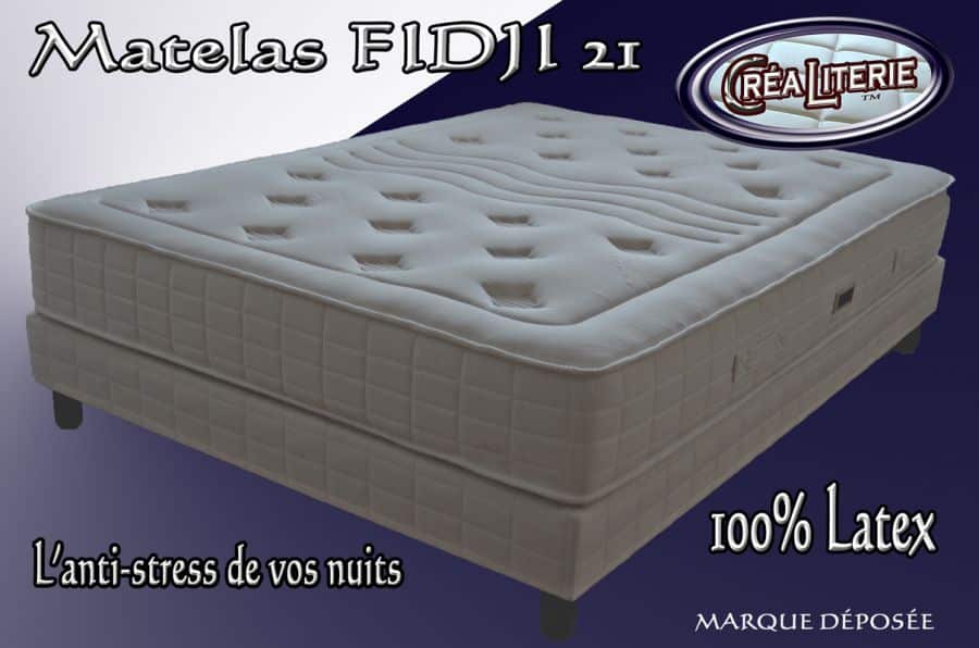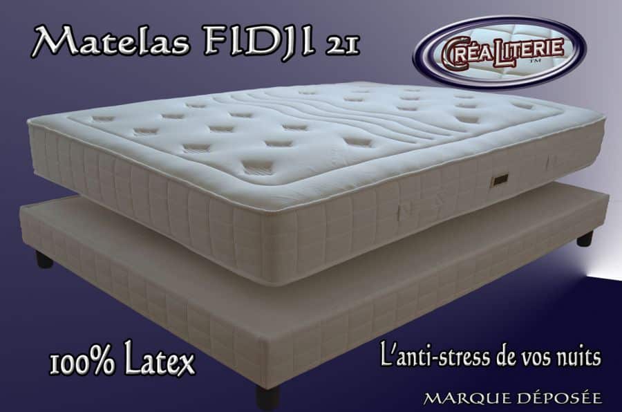 Matelas Fidji 21 latex multizone micro perforé densité 84 kg/m3 sans cfc coutil Anti-stress Fabrication Francaise par Créaliterie. Matelas fidji 100%...