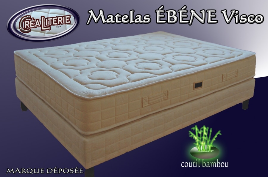 Matelas ÉBÉNE viscorelax à mémoire de forme (coutil bambou) Fabrication Française par Créaliterie.Matelas 100% polyuréthane haute résilience + matériau à...