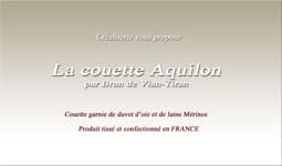 Couette AQUILON 200 gr/m² Mérinos + 150 gr/m² Duvet oie Fabrication Française par Brun de Vian-Tiran. Couette AQUILON 350 gr/m² en laines Mérinos 200 gr/m²…