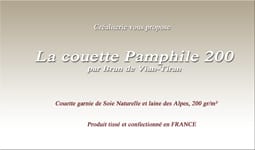 Couette Pamphile 200 g/m² Brun de Vian tiran 30 % soie et 70 % laine des Alpes Fabrication Française par Brun de Vian-Tiran.