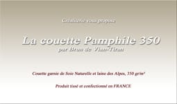 Couette PAMPHILE 350 g/m² BVT 30 % soie et 70 % laine des Alpes Fabrication Française par Brun de Vian-Tiran.