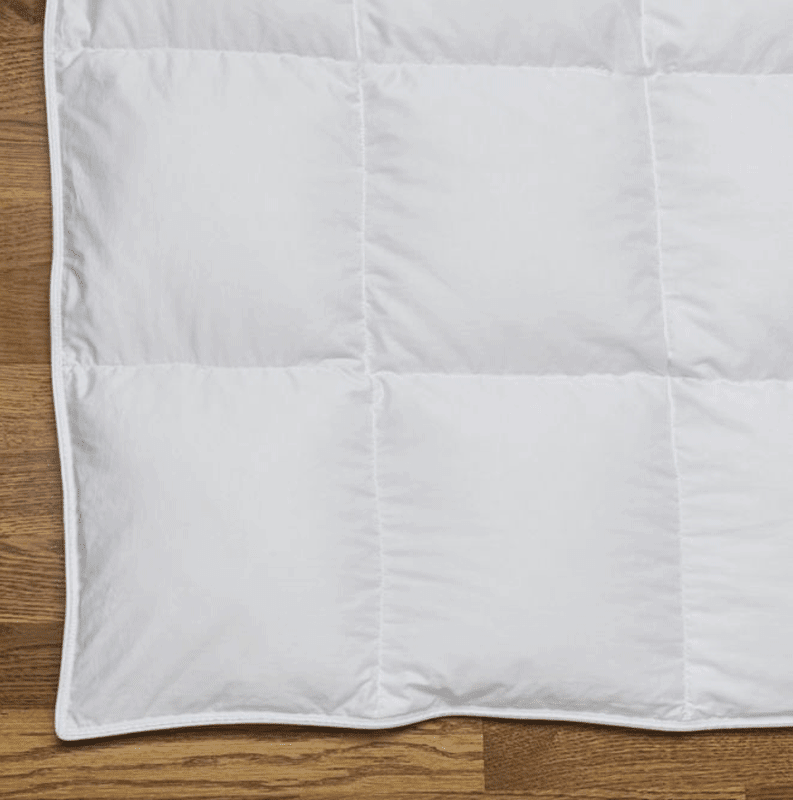 Le piquage en carreaux de la couette Arosa ultra light garantit une répartition homogène du garnissage sur l’ensemble de la couette.