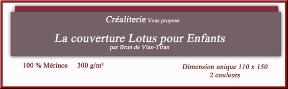 Couverture Bébé LOTUS 300 g/m², en 100 % Mérinos fabrication Française par BRUN de VIAN-TIRAN.