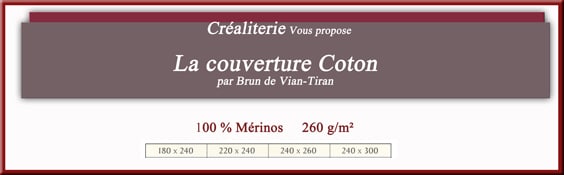 Couverture Coton 210 g/m² en 100 % Coton Fabrication Française par Brun de Vian-Tiran.