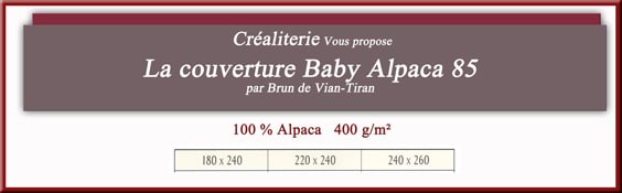 Couverture en laine baby ALPACA 85 pour l’hiver et demi-saison.