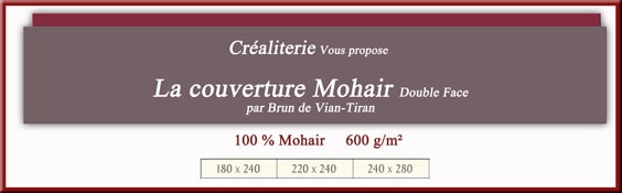 Couverture de Lit Mohair Double Face 600 gr/m² en 100 % Mohair Fabrication Française par Brun de Vian-Tiran.