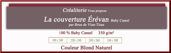 Couverture de lit Érévan 350 g/m² en 100% Baby Camel Fabrication Française par Brun de Vian-Tiran.
