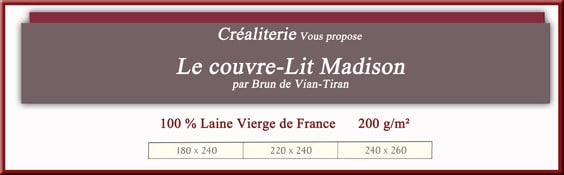 Couvre-Lit Bvt MADISON 200 gr/m² Laine Vierge de France Fabrication Française par BRUN de VIAN-TIRAN.