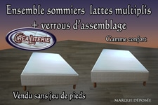 Ensemble sommiers tapissiers lattes multiplis + verrous d’assemblageLITERIE GAMME CONFORTSOMMIERS GARANTIE 7 ANS Afin de faciliter la manipulation de votre sommier dans des passages…