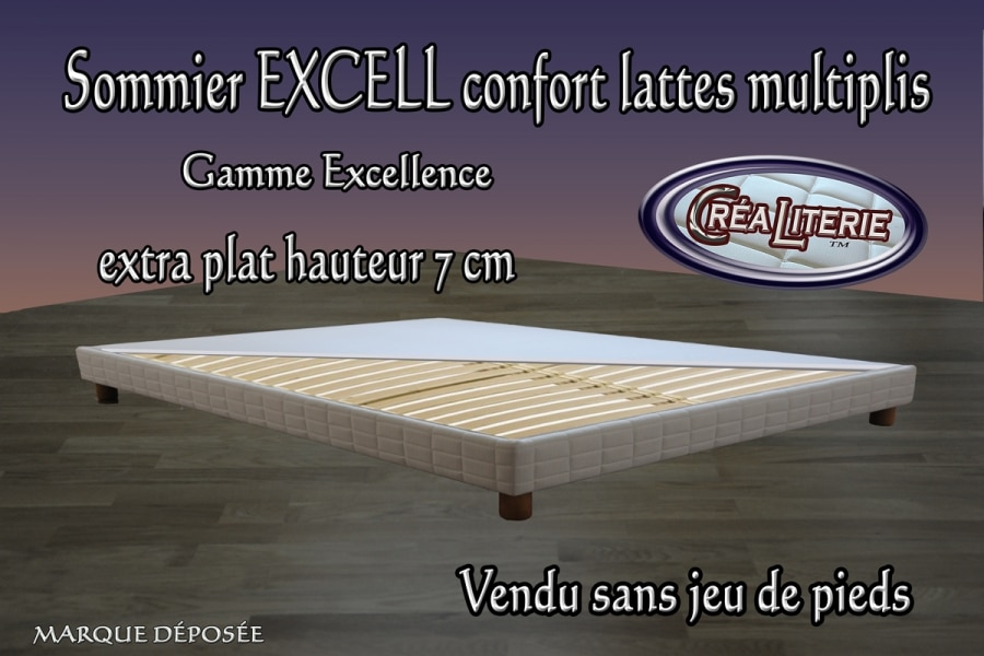 Excell sommier confort lattes multiplis extra plat HT 7 cm LITERIE GAMME EXCELLENCE Sommier tapissier à lattes confort multiplis hêtre massif, de 7 cm de…