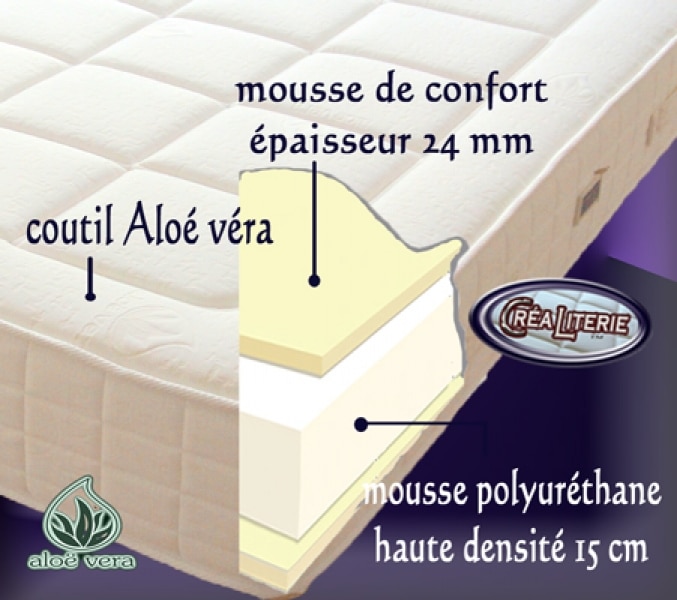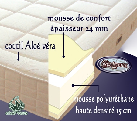Matelas AMBRE 140 x 190 en mousse polyuréthane haute résilience (coutil Aloé Véra)Matelas 100% polyuréthane de très haute densité LITERIE GAMME CONFORT MATELAS GARANTIE 7…