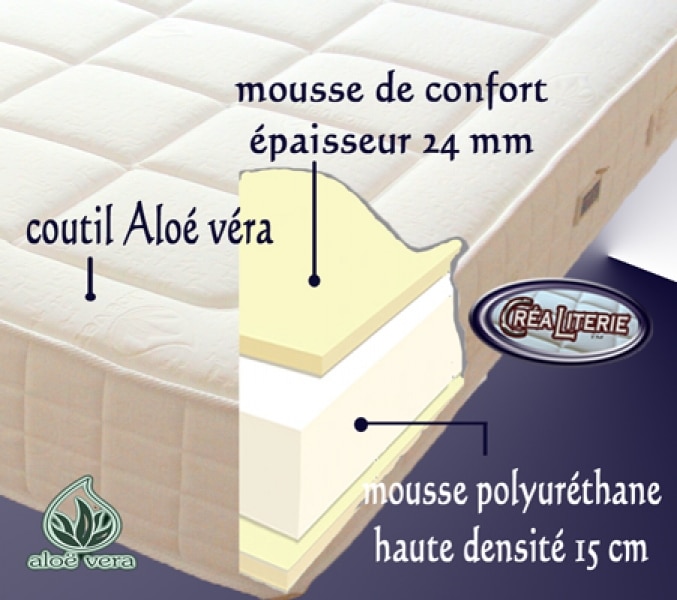 Matelas AMBRE en mousse polyuréthane haute résilience (coutil Aloé Véra)Matelas 100% polyuréthane de très haute densité LITERIE GAMME CONFORT MATELAS GARANTIE 7 ANS Couchage ferme…