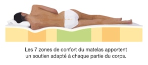 Les 7 zones de confort du matelas apportent un soutien adapté à chaque partie du corps.