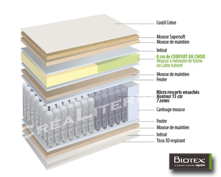Matelas Biotex BIO Extase Latex Végétale Ressorts ensachés & latex végétal à base de lait d hévéa Fabrication Française