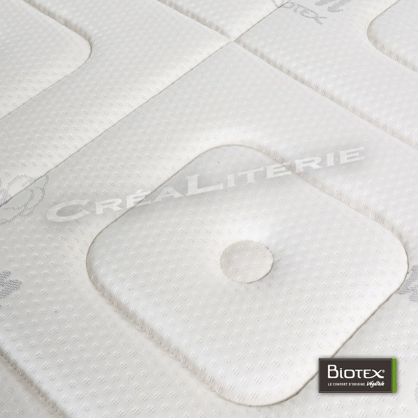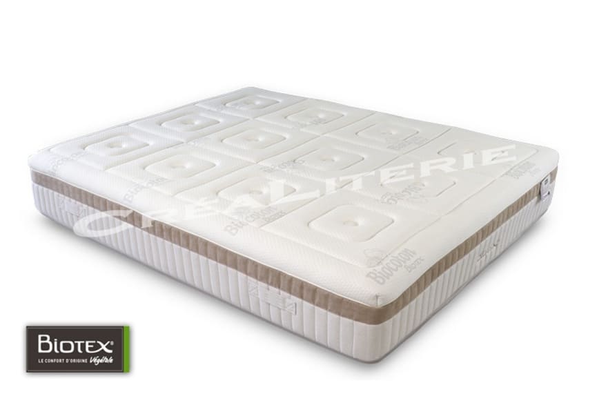 Matelas Biotex Bio Tempo Mémo Sensitive Biotex visco végétale à mémoire de forme + haute résilience soja (coutil Bio Coton)