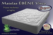 Matelas Ébéne Visco relax à mémoire de forme densité 50 kg/m³ (coutil bambou) Fabrication Française