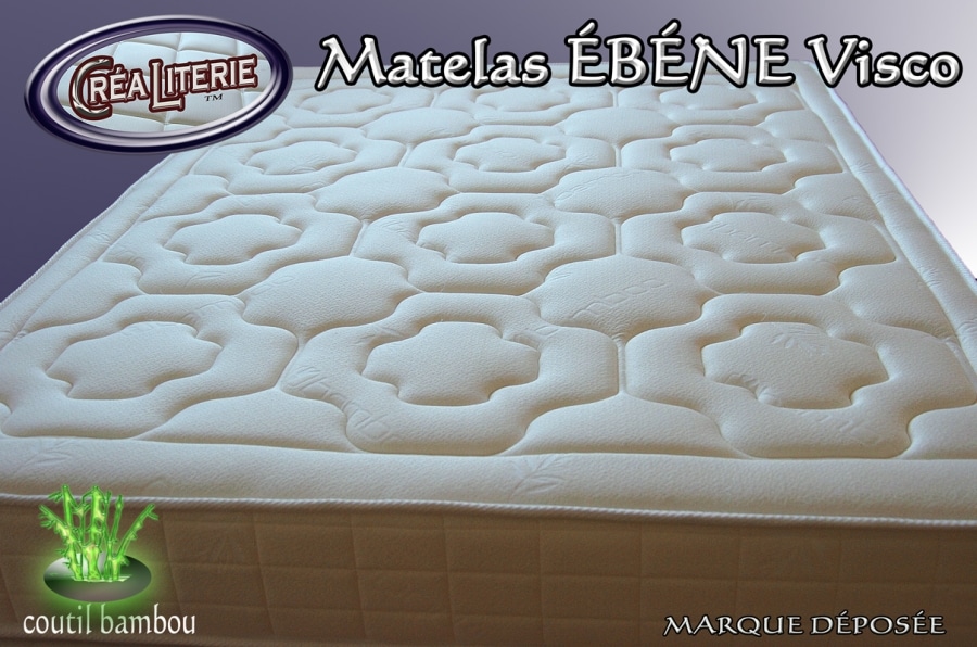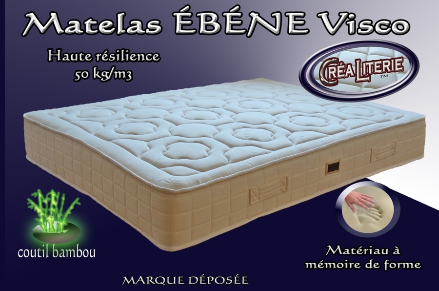 Matelas ÉBÉNE viscorelax à mémoire de forme (coutil bambou) Fabrication Française par Créaliterie.Matelas 100% polyuréthane haute résilience + matériau à mémoire de forme Eucatem…