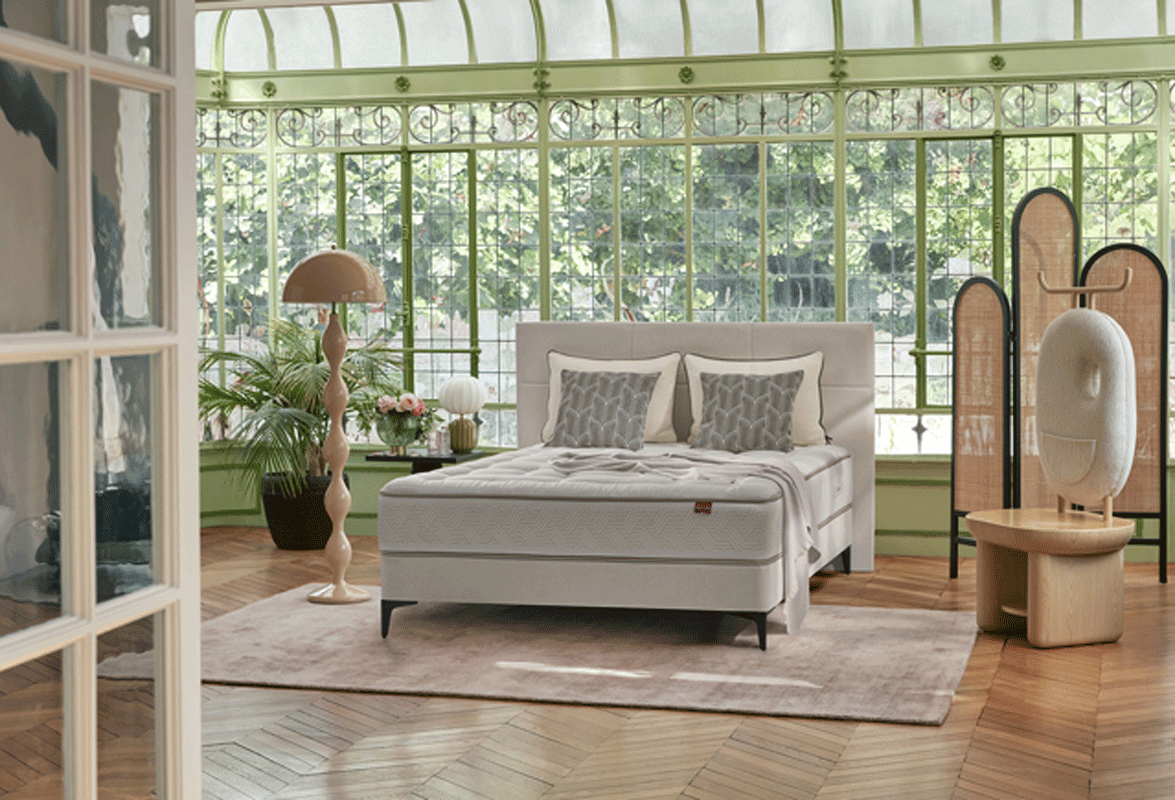 Le matelas Macassar de la Collection Art Déco Épéda, composé de la suspension Multi-Air, comportant 800 ressorts ensachés (sur la dimension d’un couchage 140×190) et 5 zones de soutien morphologique