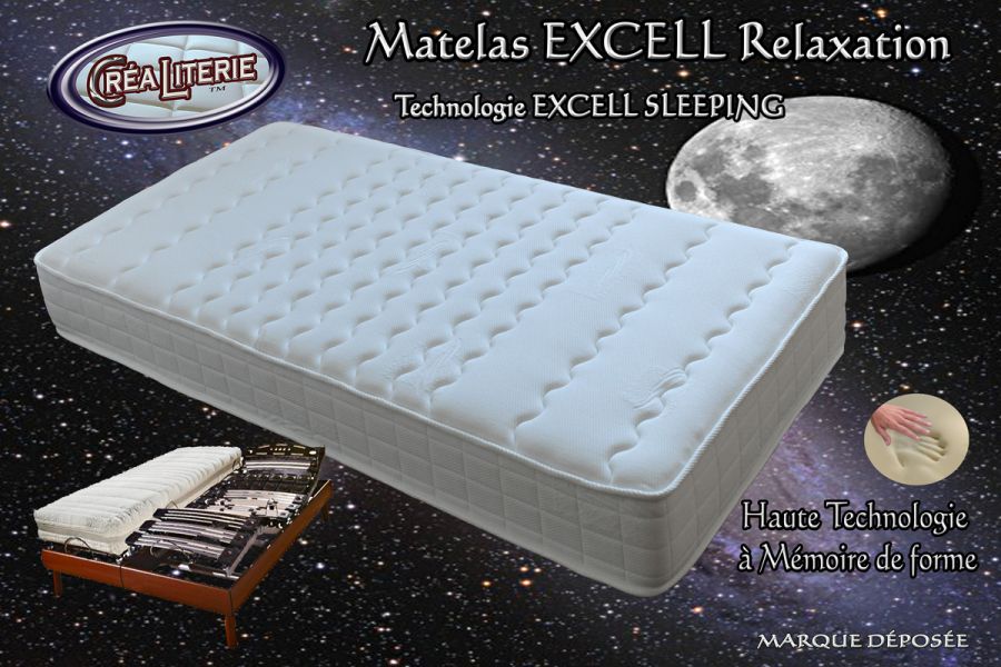 Matelas EXCELL Médium Relaxation à mémoire de forme (technologie anti-stress)Matelas 100% matériaux haute technologie Exclusiv sans CFC LITERIE GAMME EXCELLENCE MATELAS GARANTIE 12 ANSUn sommet…