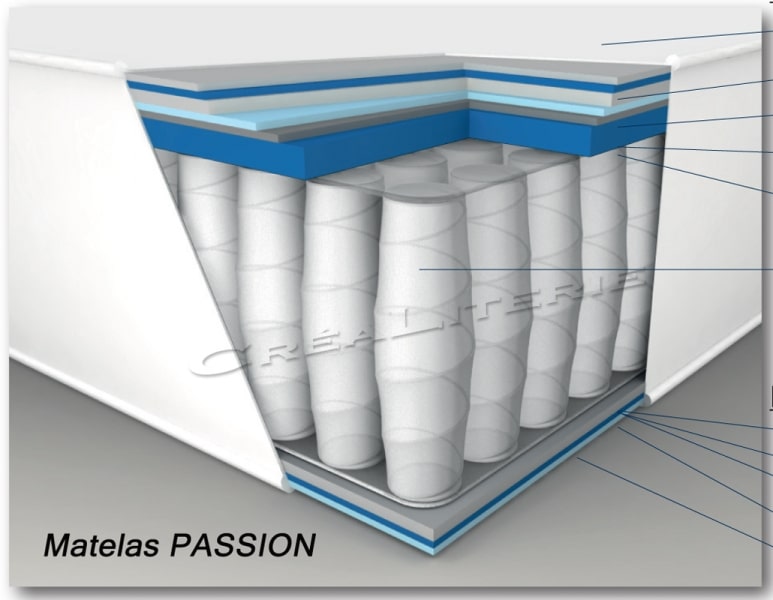 Un cadre lamette de pourtour garantit l’indéformabilité du matelas Passion dans le temps.
