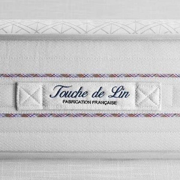 Les plateaux du matelas Touche de Lin sont recouverts d’un coutil stretch en polyester et viscose. Les plates-bandes bénéficient de 5 poignées horizontales brodées pour une manipulation aisée du matelas.