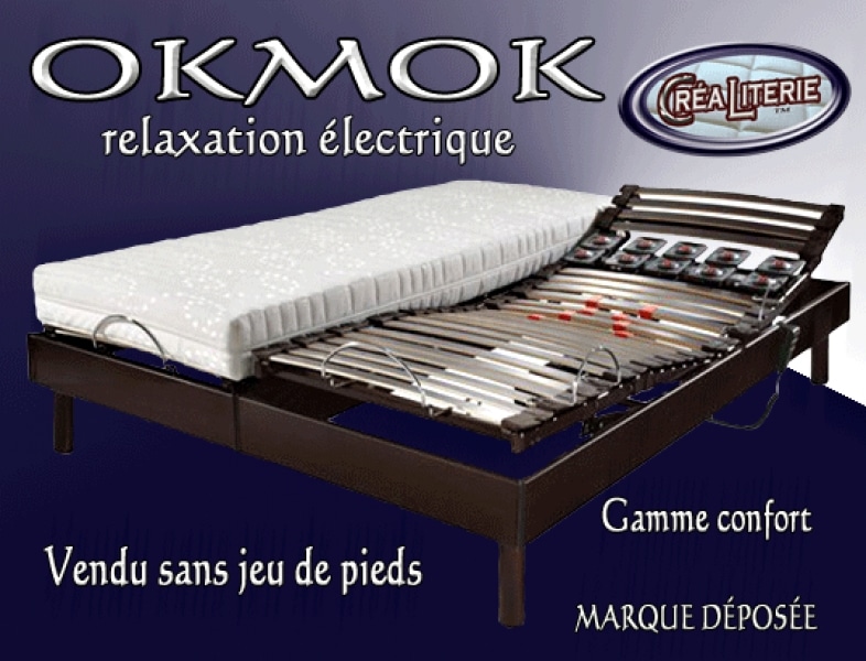 OKMOK sommier relaxation électrique à lattes + plots Fabrication Française par CRÉALITERIELITERIE GAMME CONFORTSommier relaxation TPR 5 zones, 24 lattes à technique mixte plots/lattes En…