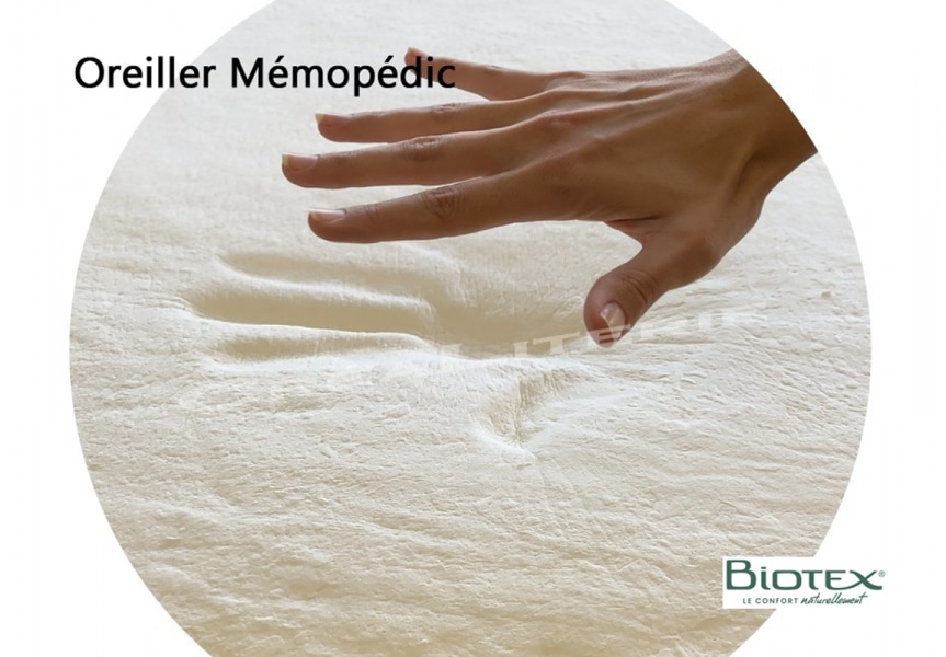 Oreiller Biotex Mémopédic végétale Mémo Sensitive à base d huile de Ricin Memoire de forme Fabriqué en France