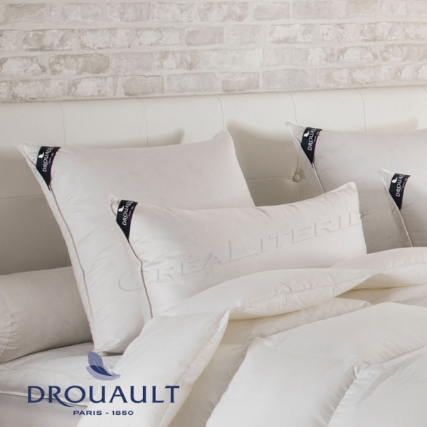 L’oreiller GALAXIE duvet d’oie supérieure extra gonflante, traite anti-acariens Proneem® 100% d’actifs naturels, origine Europe Fabriqué en France par Drouault.