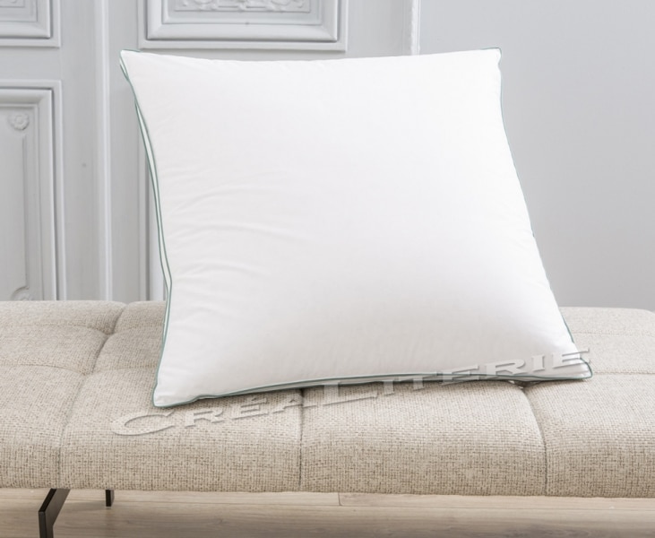 Oreiller Palais Royal mi-ferme en duvet Oie et canard recyclés, plate-bande 2,5 cm Fabriqué en France par DROUAULT.