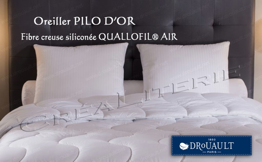 Oreiller Drouault Pilo d’or Plus fibre creuse siliconée QUALLOFIL® Premium GONFLANT AERIEN Fabriqué en France